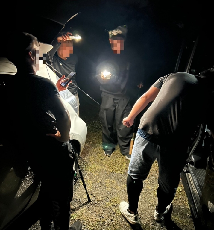 真っ暗で雨もパラパラ降っていましたが、みんな釣りたい一心で黙々と竿を投げていました笑