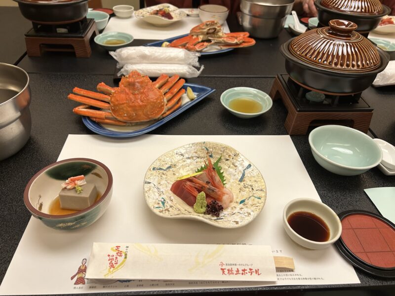 お刺身やカニなど、日本海の海の幸がたくさん並び、旅行らしい豪華なご飯でした🦀
